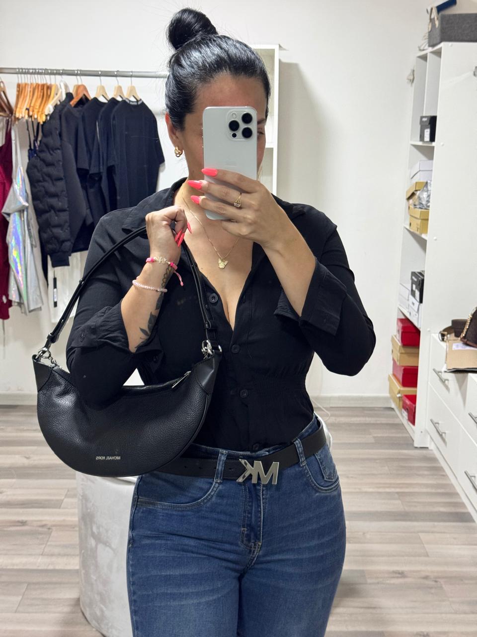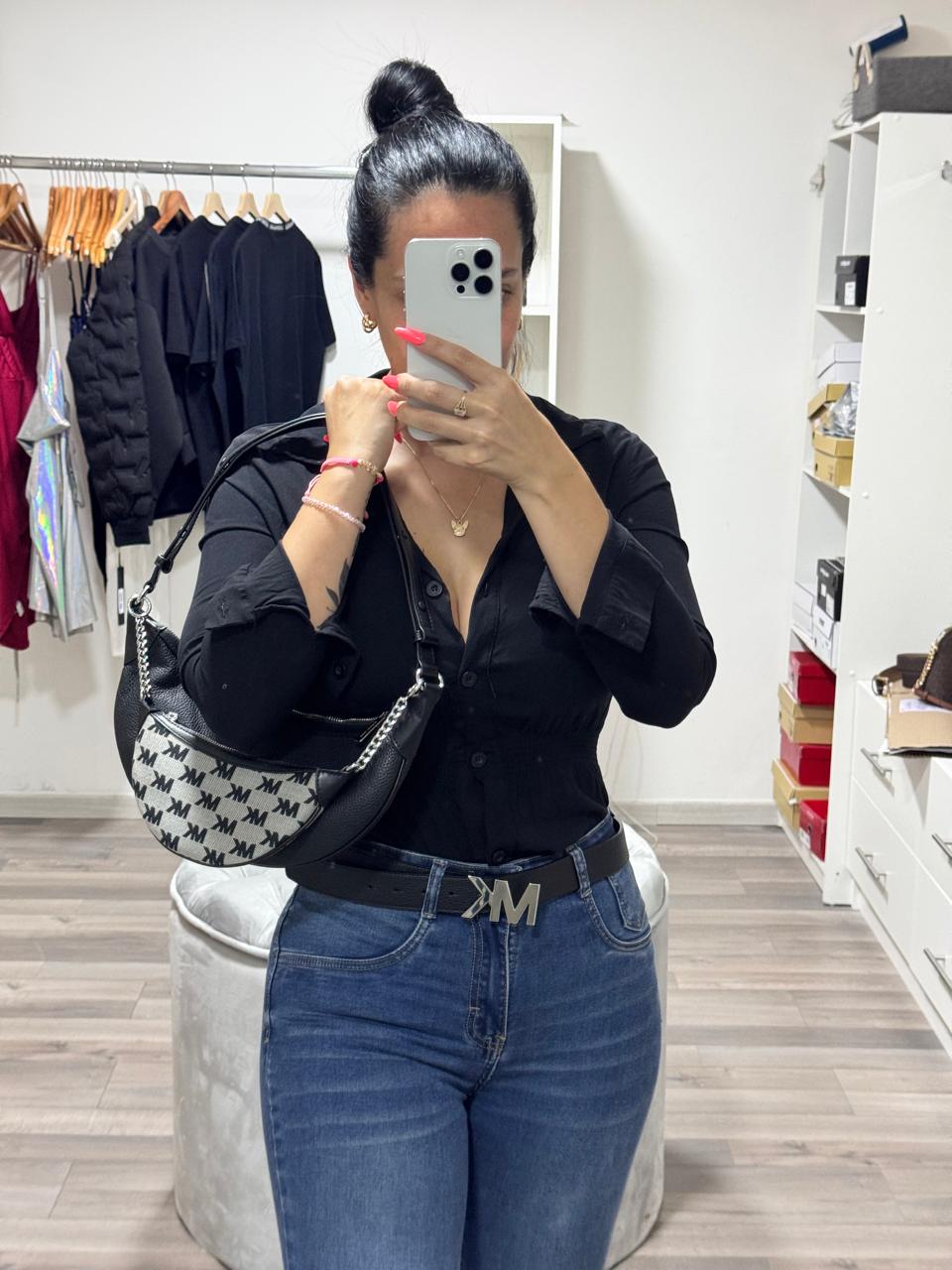Cartera mediana de hombro tono negro, estuche removible.