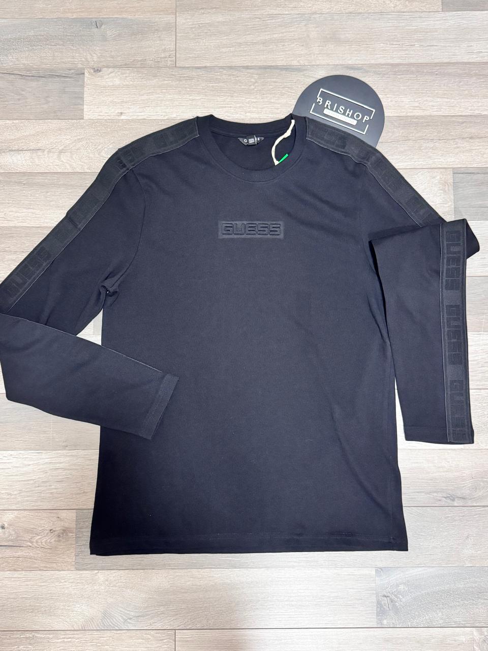 Polera negra manga larga, algodón grueso