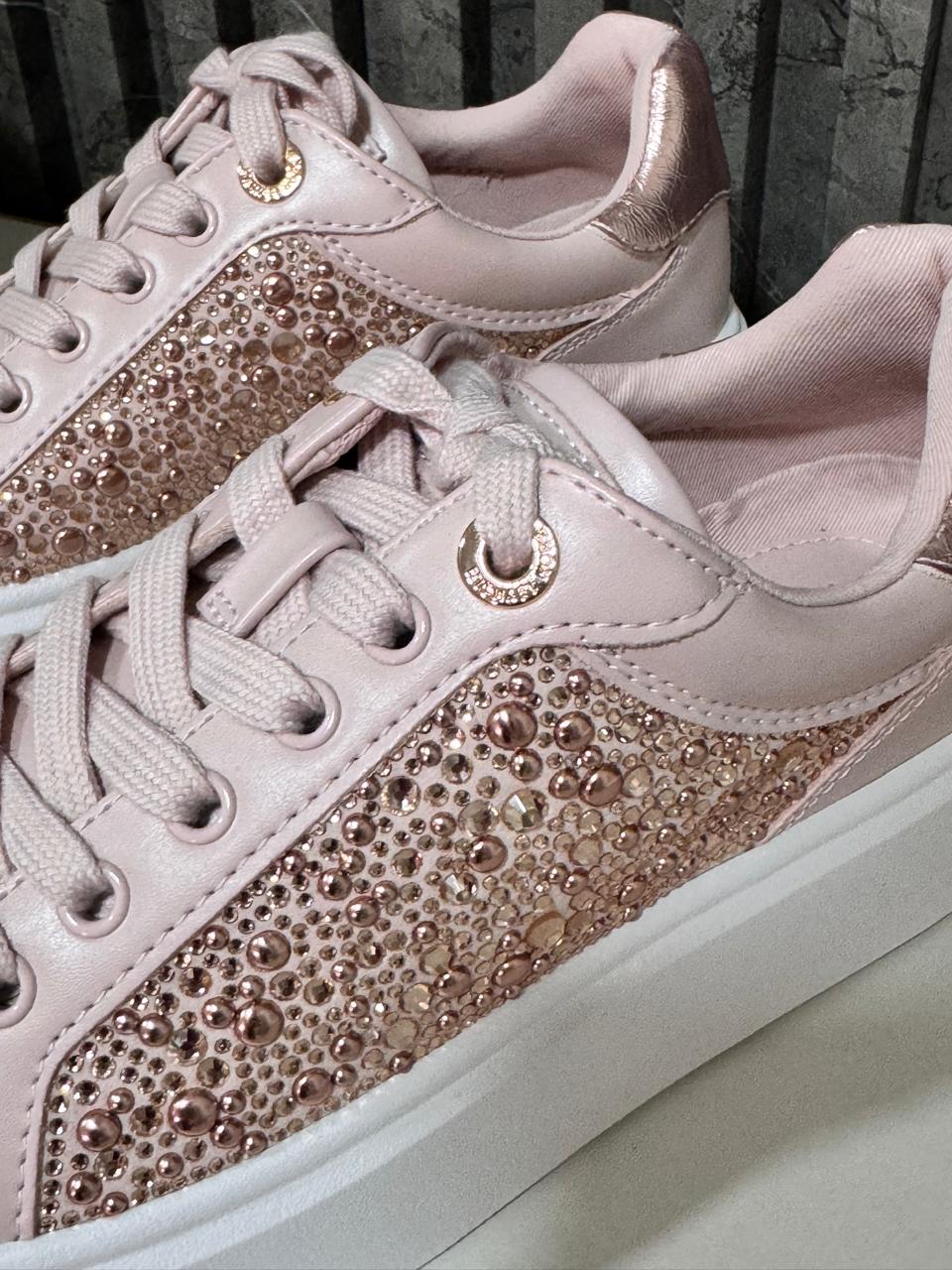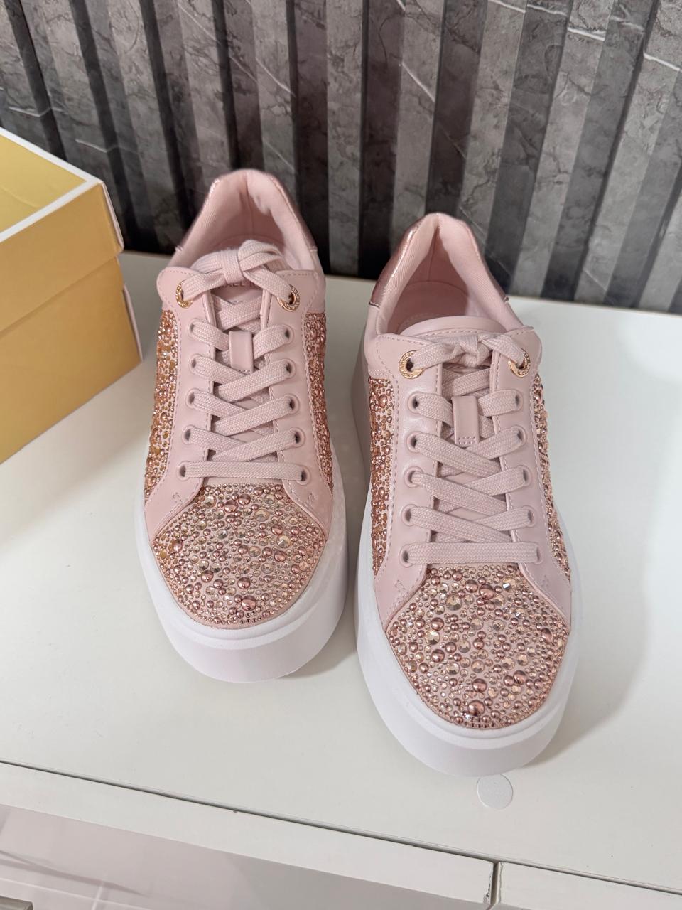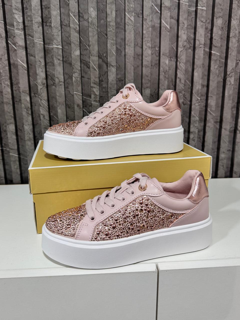 Zapatilla MK con pedrería rosada,