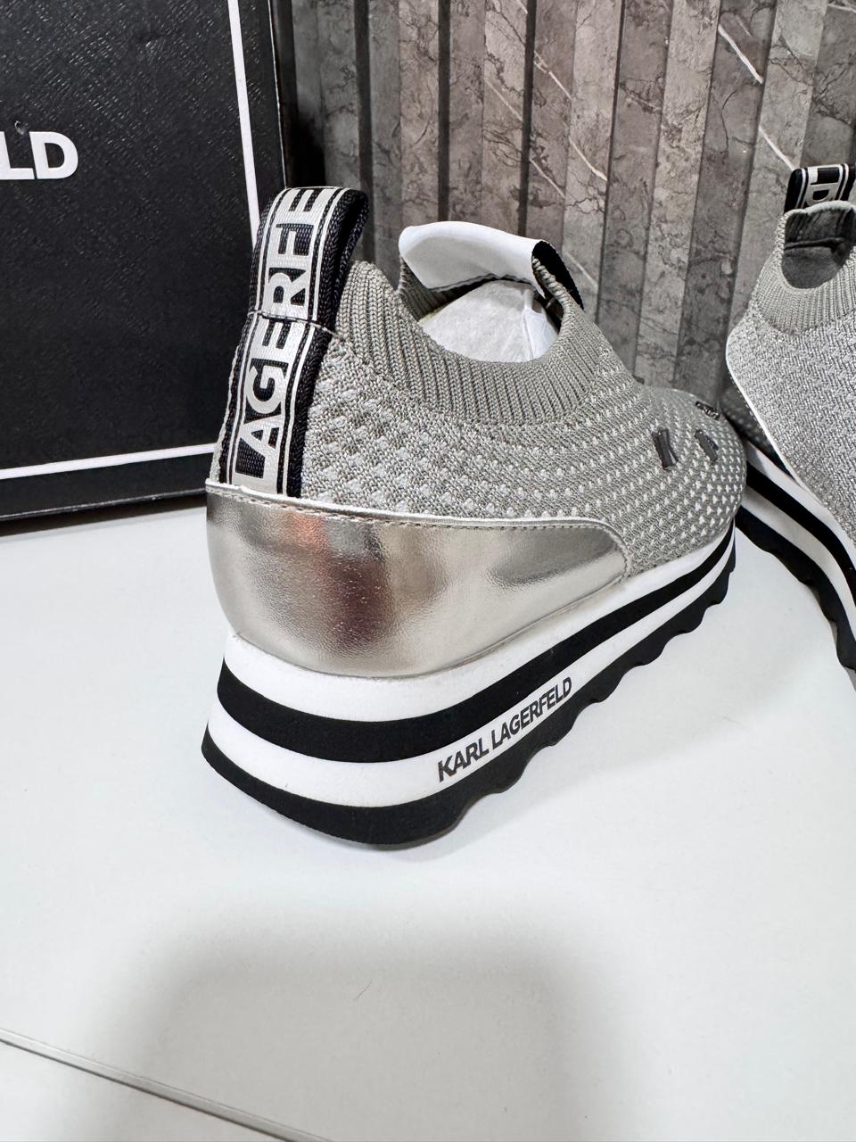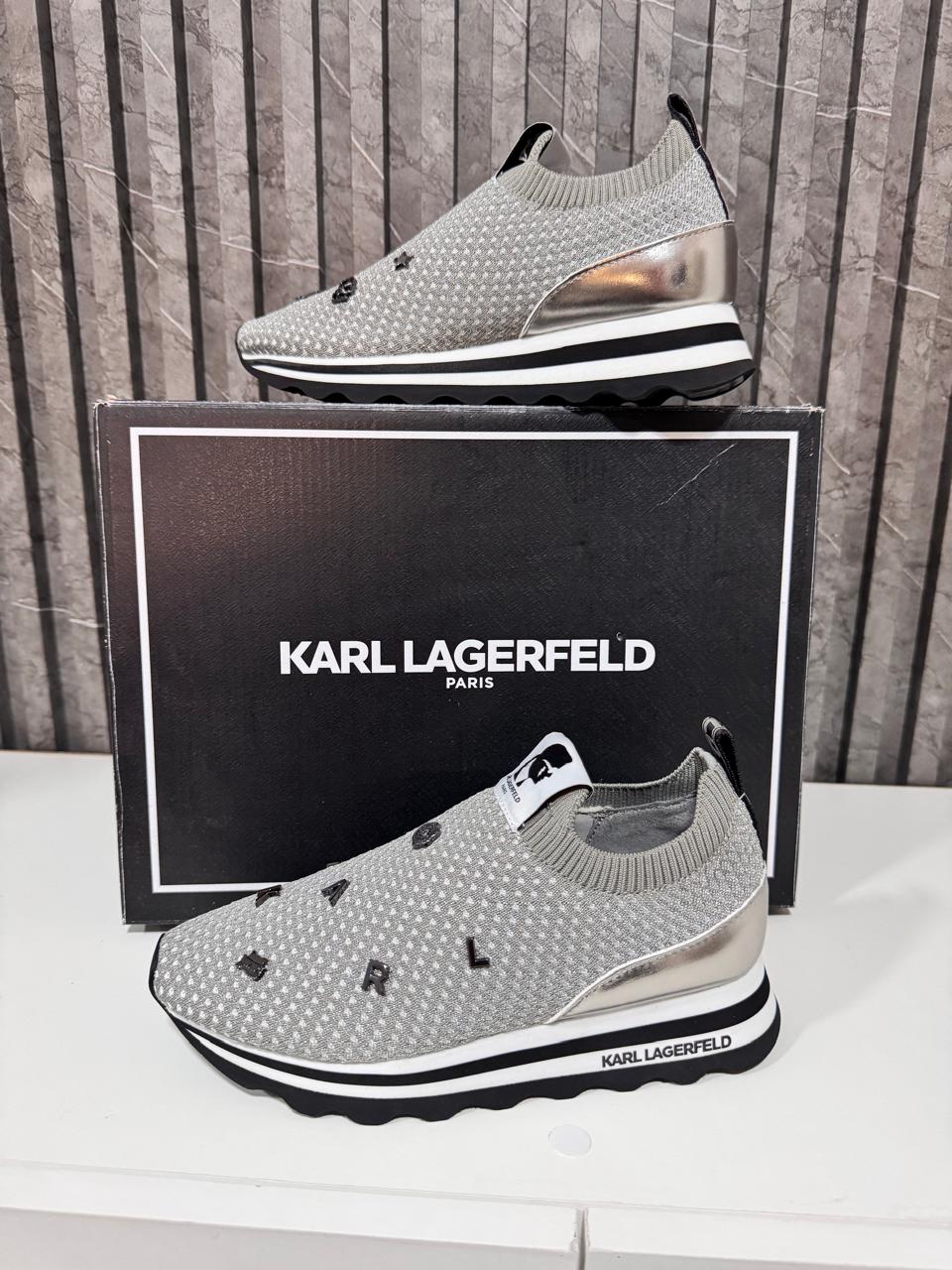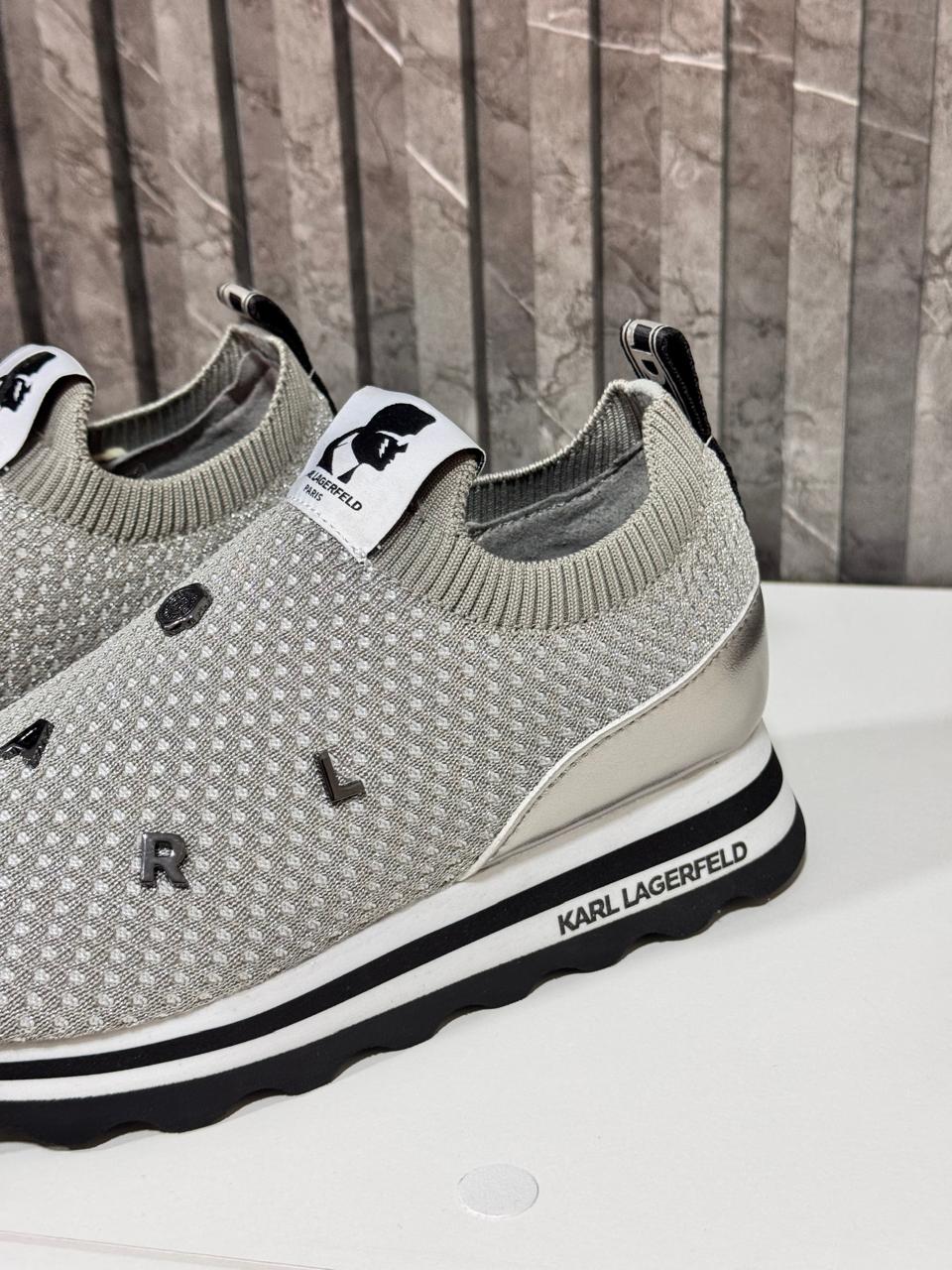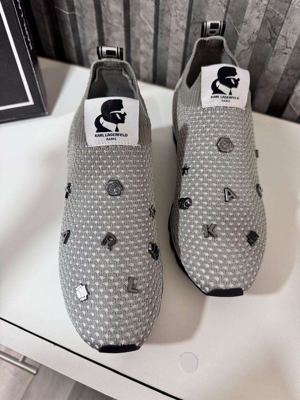 Zapatilla diseñador Karl Lagerfeld, sin cordones material elastizado con pines en color gris